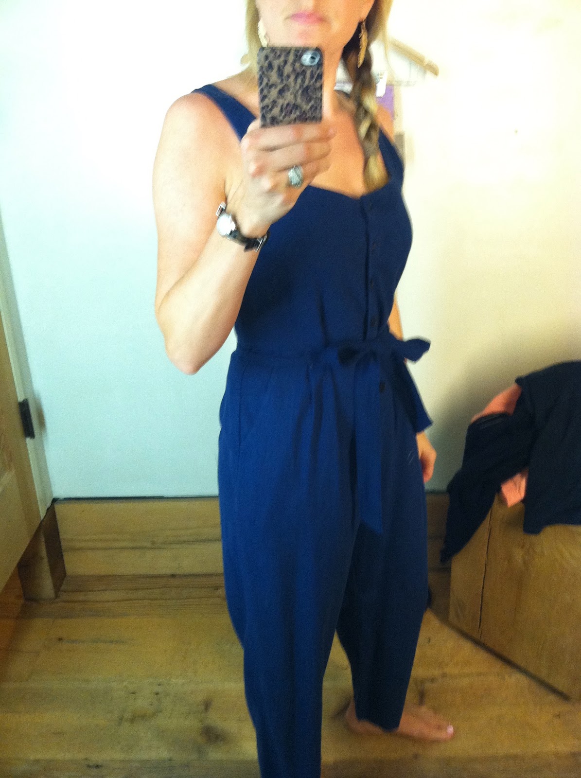 I tried on the size small in this, because I usually have to accommodate my back-side in rompers. However, I should have tried the x-small in this as well. It ran a little big on me. I liked it very much, but the leg length felt off. I think it should have been a little shorter or longer. This is what I would consider "clam-digger" length. This romper is very comfy, and the fabric belt could be interchanged for a leather belt to give a different vibe.